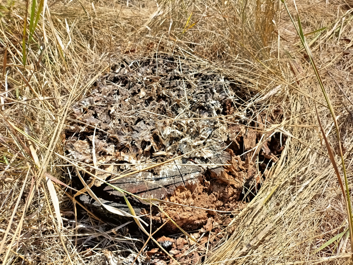 Unii copaci care se uscaseră în livadă i-am tăiat, iar lemnul fructifer l-am pus la dos. După ce tai copacul, rămâne o buturugă. Primul gând care îți vine este să o scoți imediat din pământ, dar am decis să las intenționat unele buturugi. Spre exemplu, buturuga asta (care fusese tăiată înainte să vin în livadă) este de cireș.
